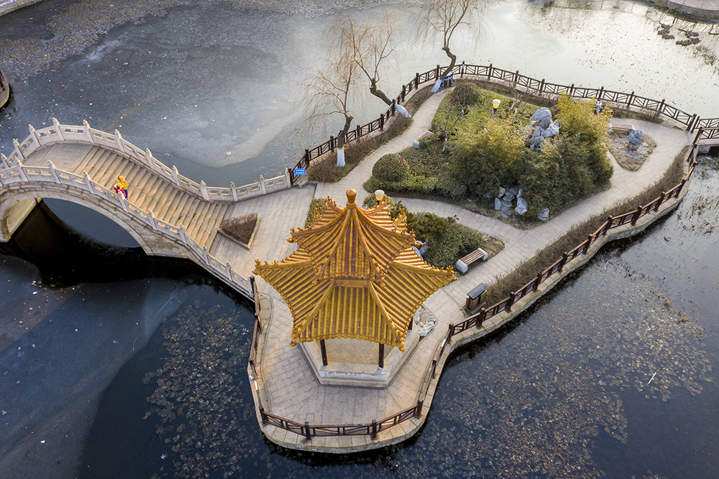 What an enchanting winter view of the Liuhu Park in Qingdao, East China’s Shandong province! The golden pavilion complements the small bridge and serene waters. What a lovely place for strolling!