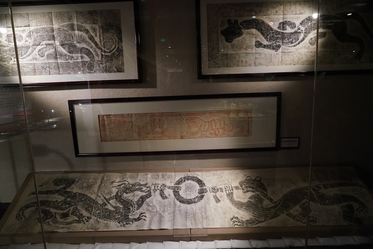 A modern ink rubbing of the an Eastern Han Dynasty (25-220) picture brick depicting an azure dragon and a white tiger fighting for a jade ring [Photo/VCG]