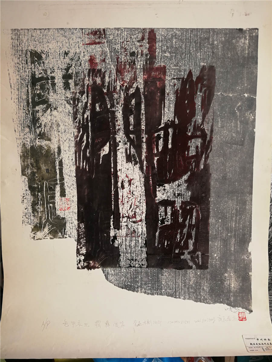 A wood-block painting by artist Wei Yuncheng is on display at the Winter Olympic village in Beijing. [Photo provided to chinadaily.com.cn]
