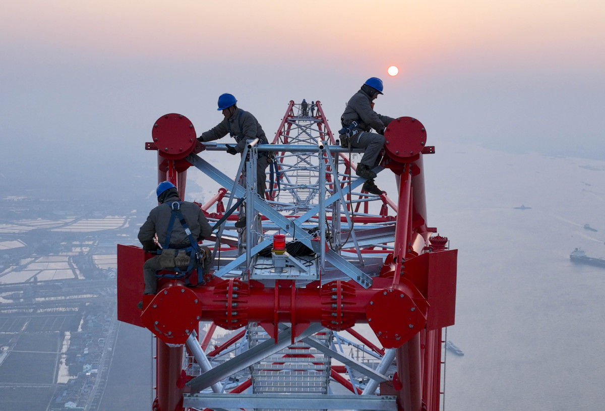 "The towers weigh about 13,000 tonnes in total," said Chen Songtao of the State Grid Jiangsu Electric Power Co Ltd, adding that the jumbos are expected to be commissioned in June after the attachments and electric wires are installed.