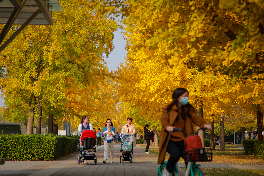 People visit Olympic Forest Park in Beijing on Oct 29, 2021. [Photo/IC]