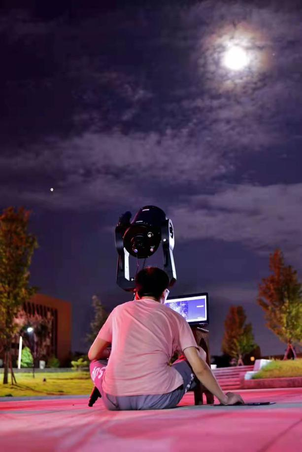 Xie Jie, a photographer from Hunan province, takes pictures of the starry sky. [Photo provided to chinadaily.com.cn]