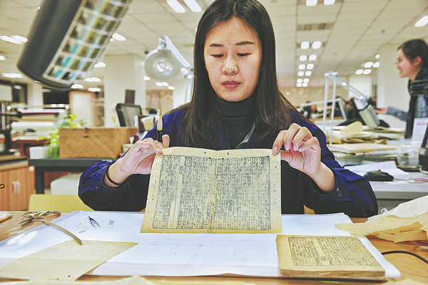 As a restorer of ancient books at the National Library of China in Beijing, the 35-year-old gets emotional when recalling the almost 3,000 days she spent fixing Tianlu Linlang, a precious literary collection, including 600-odd volumes of ancient books, which were once in the former inventory of a Qing Dynasty (1644-1911) royal study.