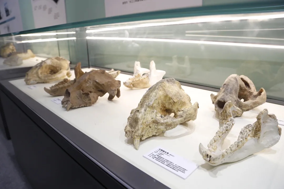 Skull fossils of giant pandas are on display at the Beijing Museum of Natural History. [Photo/Official WeChat account of Beijing Museum of Natural History]