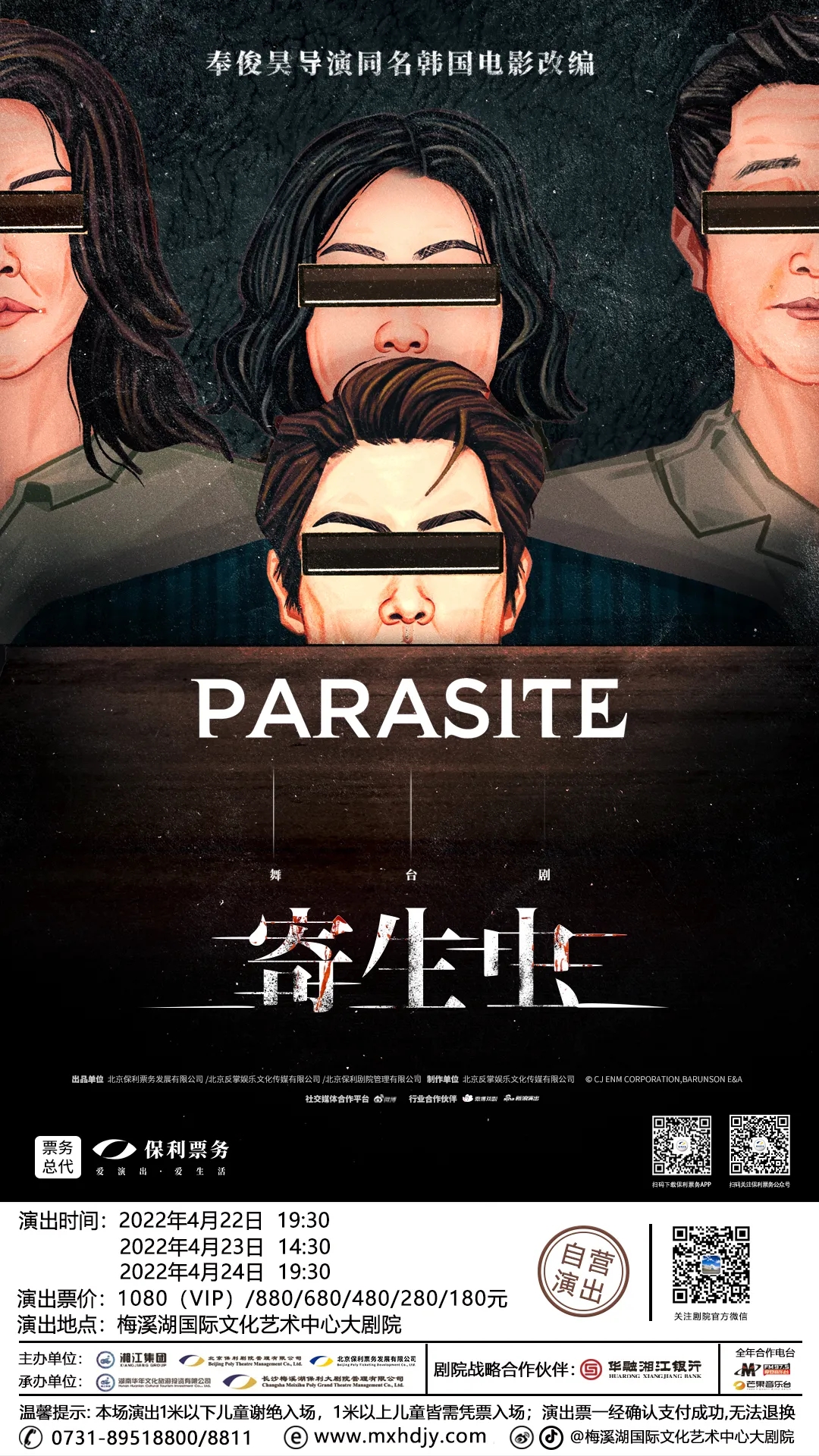 Adapted from the renowned South Korean film of the same title, the drama Parasite will be staged at the Meixihu International Culture & Arts Center Grand Theater in Changsha, Hunan province, on April 22 to 24. The drama is about social contradictions and the human nature.