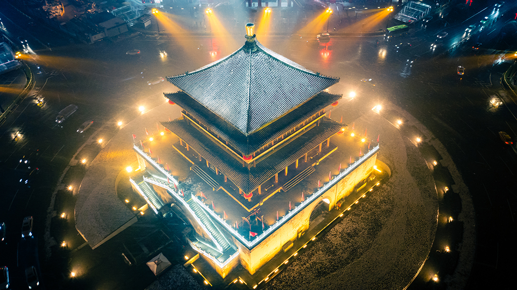 Xi’an Bell Tower in Xi’an, Northwest China’s Shaanxi province sparkles at night. [Photos/IC]