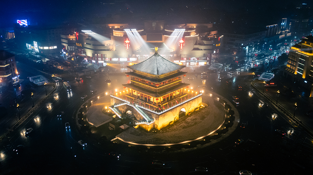 Bell Tower in Xi’an lights up at night