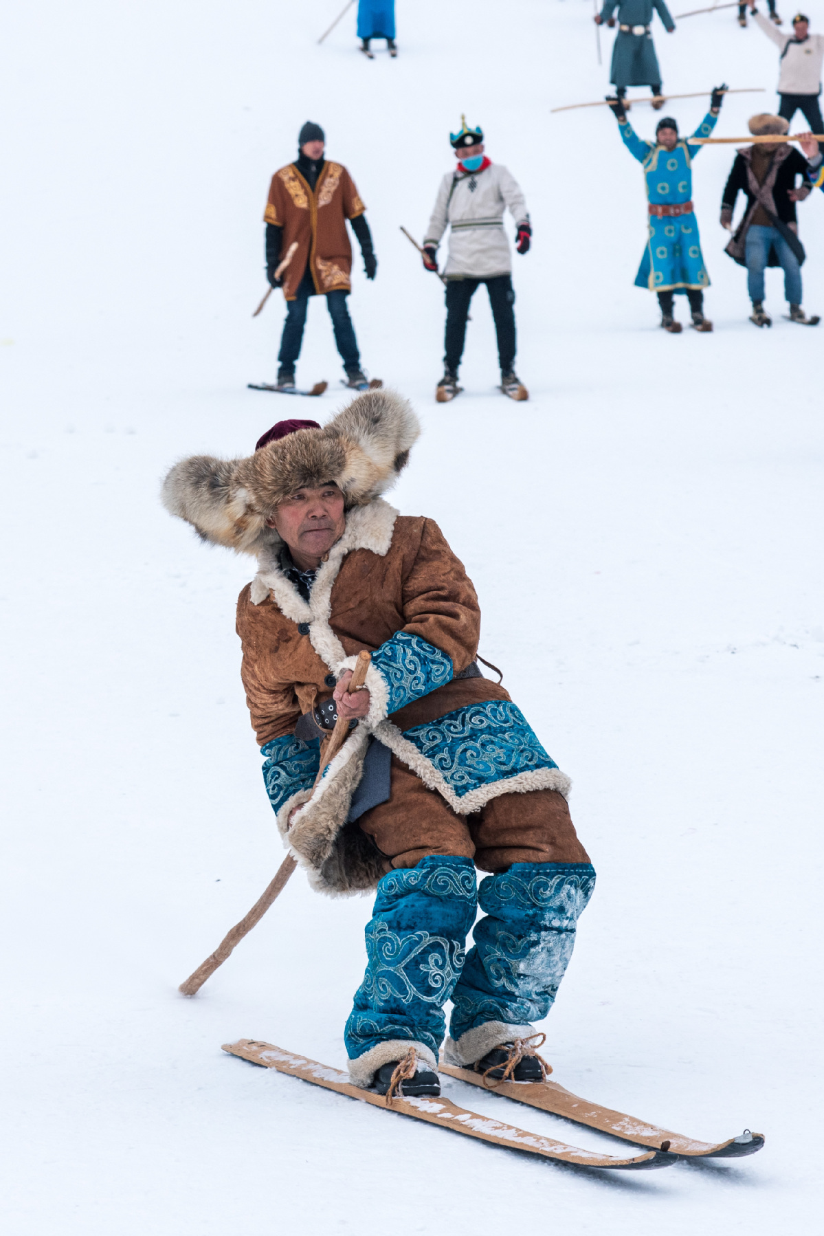 A man skis on boards covered with animal skin at the Jiangjunshan Ski Resort in Northwest China’s Xinjiang Uygur autonomous region. [Photo provided to www.chinaservicesinfo.com]