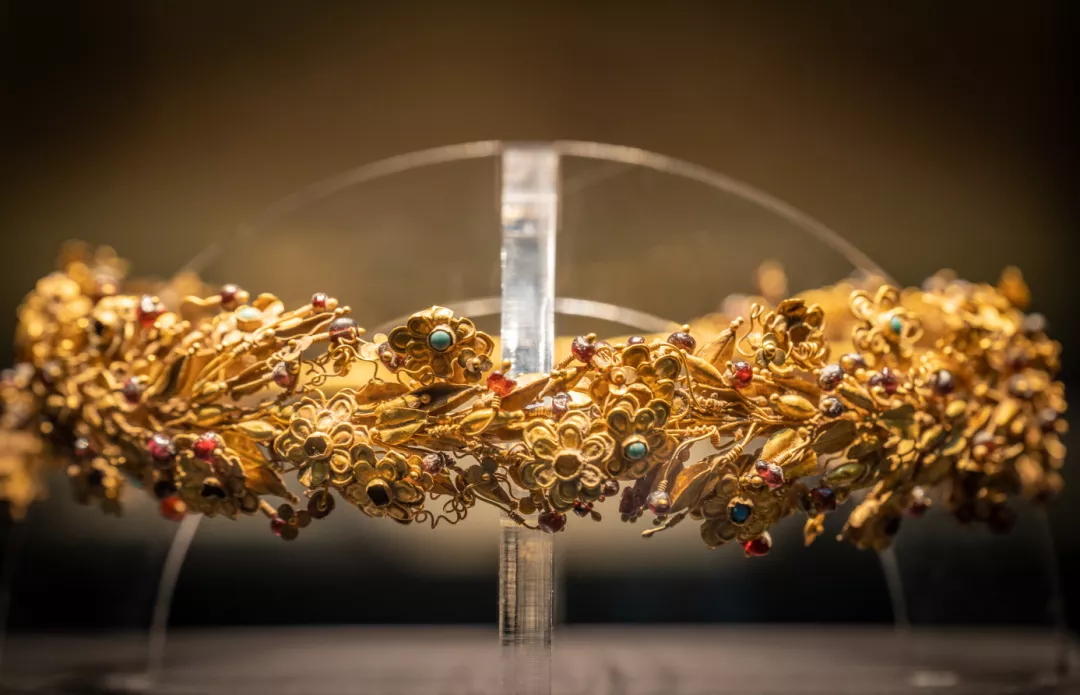 Gold crown embedded with gems, Han Dynasty (206 BC-AD 220), permanent collection of the Inner Mongolia Museum [Photo/Official WeChat account of the Chengdu Museum]