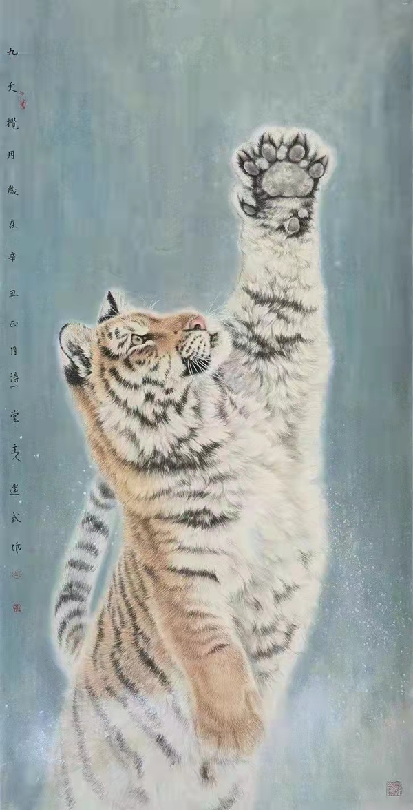 Tiger-themed paintings by Hohhot artist on display in Inner Mongolia