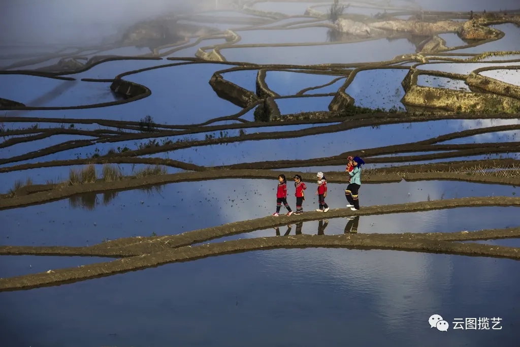 Admiring breathtaking views of the Hani terrace in Yunnan exhibit