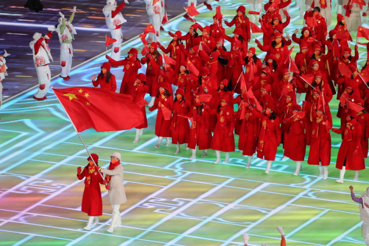 The Olympic delegation of China parade into the National Stadium during the opening ceremony of the Beijing 2022 Olympic Winter Games in Beijing, Feb 4, 2022. China, as hosts, marched in last. [Photo by Zhang Wei/China Daily]