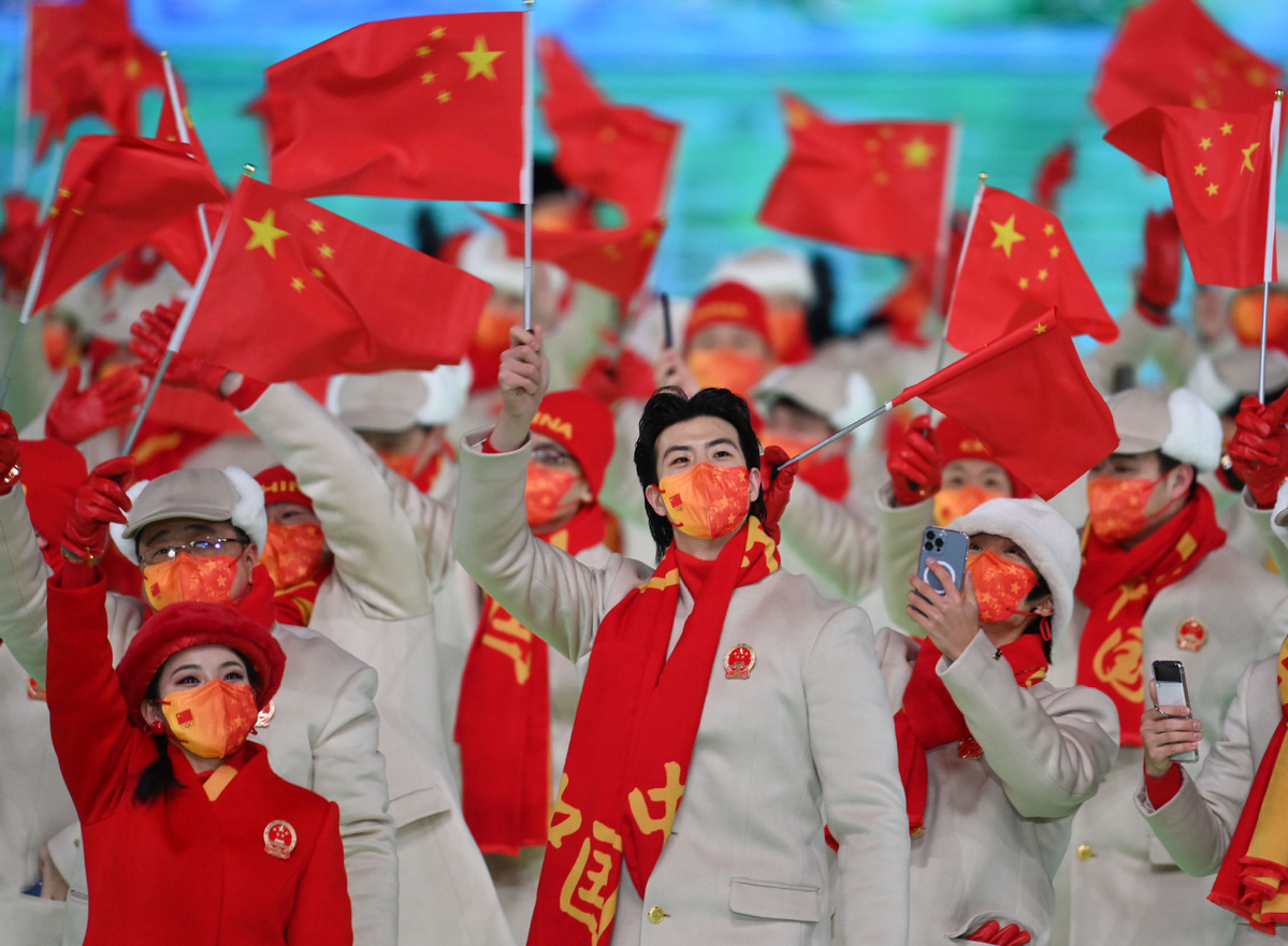 The Olympic delegation of China parade into the National Stadium during the opening ceremony of the Beijing 2022 Olympic Winter Games in Beijing, Feb 4, 2022. [Photo/Xinhua]
