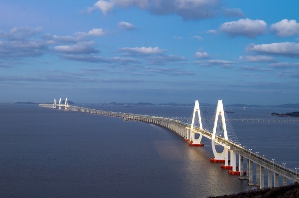 Zhoudai Bridge, linking Zhoushan and Daishan islands in Zhejiang province, opens for transportation on Dec 29, 2021. [Photo/Xinhua]