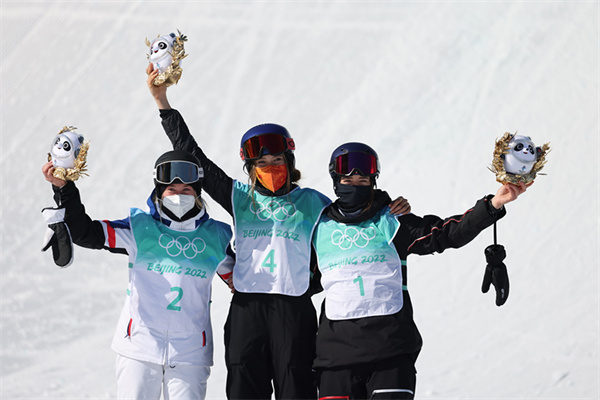 BEIJING - China's prodigy Gu Ailing claimed the historic gold with a 1620 performance she had never done before in the women's freeski big air of the Beijing 2022 Olympic Winter Games at Big Air Shougang here on Tuesday, while Tess Ledeux of France and Mathilde Gremaud of Switzerland took silver and bronze, respectively.
