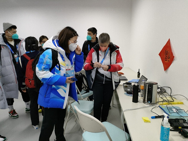 The five volunteers worked for over a week at the National Speed Skating Oval, also known as the “Ice Ribbon.” Two of them are providing translation and interpreting services for sports teams, while the other three work at the Sports Presentation Pavilion inside the venue.