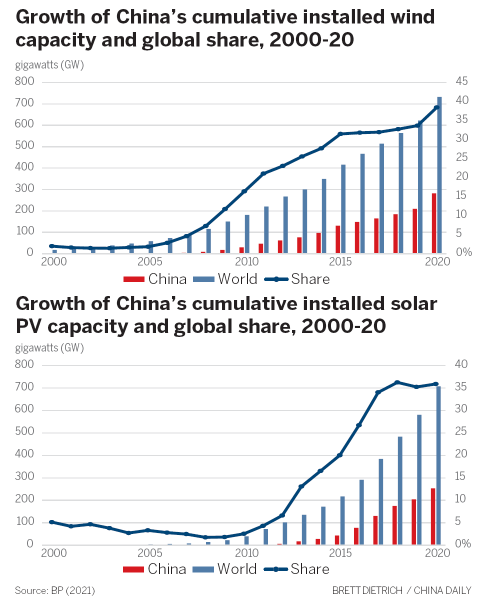 "China became the world's largest producer of wind and solar energy in an astonishingly short period of time," the report noted.
