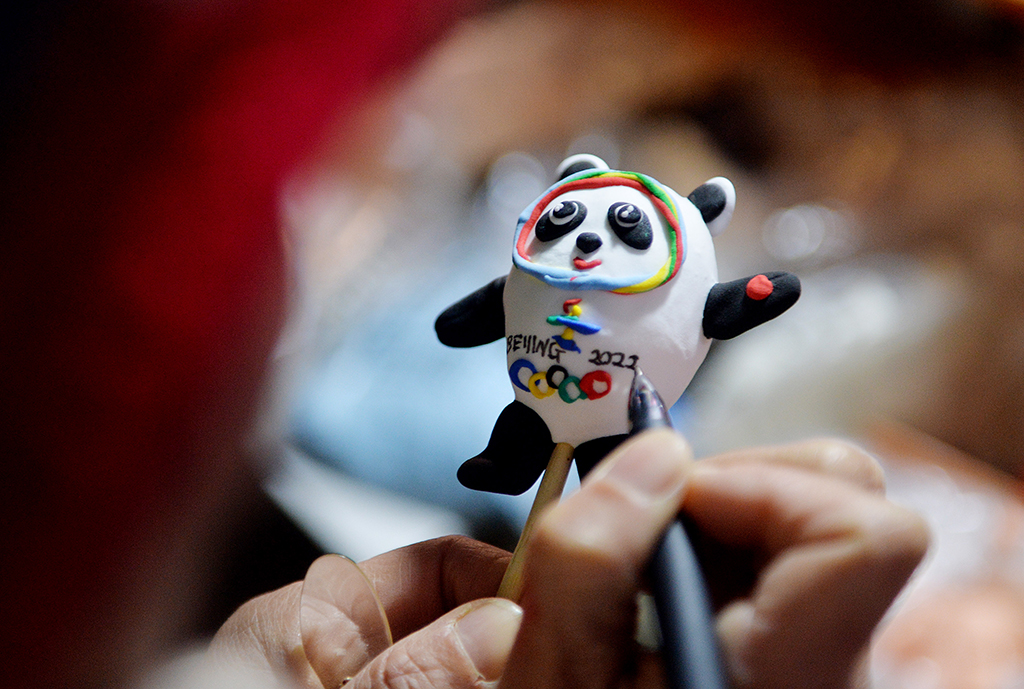 Inheritor makes dough modeling dolls of Winter Olympics mascots
