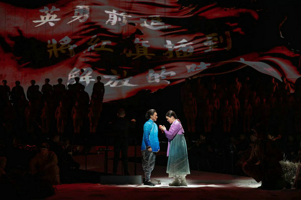 One of the roles she played was Xia He, a woman soldier in Chinese opera Yimeng Mountain, which is based on real-life stories in the Yimeng Mountain area in Shandong province during the War of Resistance Against Japanese Aggression (1931-45).