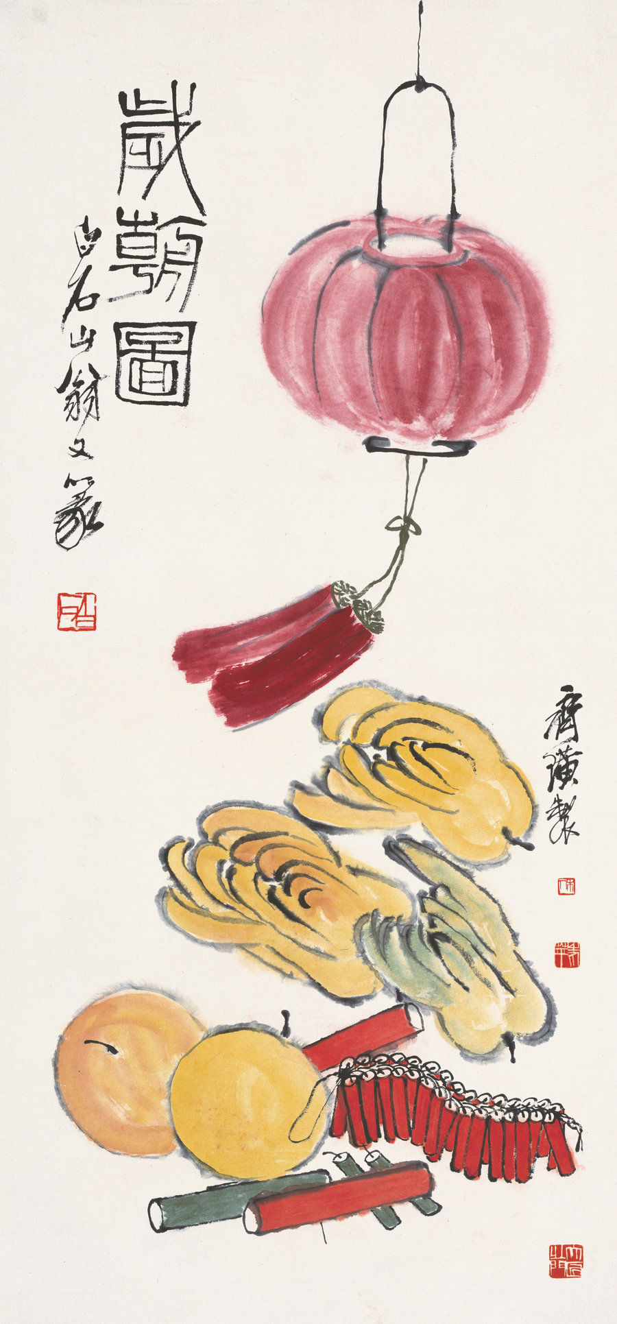 The paintings depict blooming plants in anticipation of spring as well as cultural objects, such as incense burners, catering to the high-end tastes of aristocrats and intellectuals. It was Qi who reformed the style to make it accessible to ordinary people by painting everyday objects such as red lanterns, fireworks and cabbages. The exhibition ends on April 5.