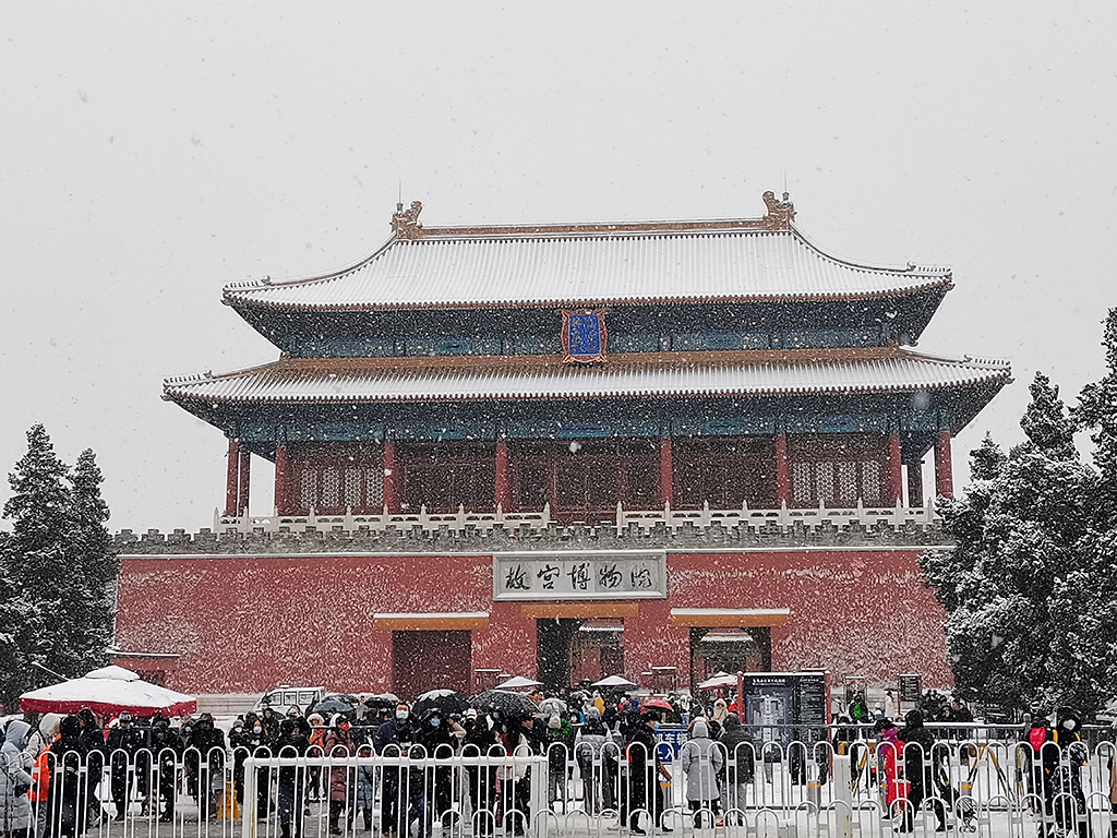 Visitors exiting the Forbidden City. A crowd came to view the snow-covered Forbidden City. [Photo by Huang Shangting/provided to www.chinaservicesinfo.com]