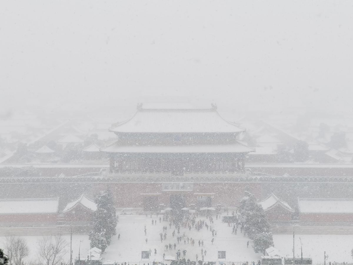 A view of the snow-covered Forbidden City from Jingshan Park [Photo by Huang Shangting/provided to www.chinaservicesinfo.com]