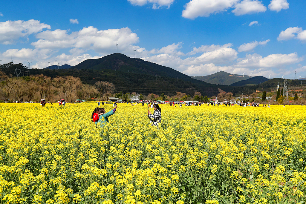 The golden sea of rapeseed flowers draws residents and tourists for photo ops in Anning, Southwest China’s Yunnan province. [Photos/IC]