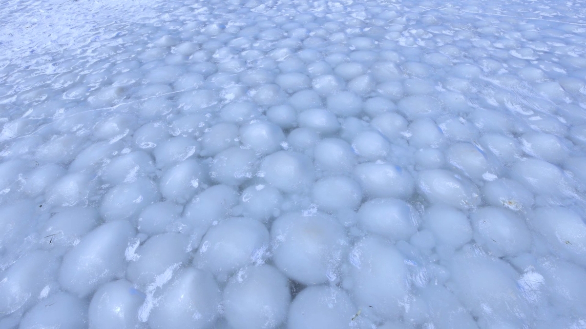 Check out a rare natural phenomenon in Sihai Lake National Wetland Park in Taonan, Northeast China’s Jilin province! Under the frozen lake, many ice and snow balls are gathered, resembling big glutinous rice balls (tangyuan) that people eat in today’s Lantern Festival.