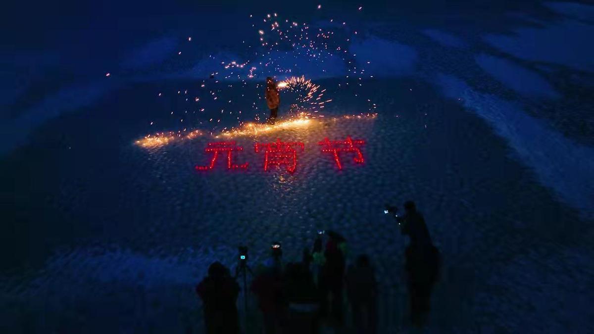 A man sets off fireworks to celebrate the Lantern Festival in Sihai Lake National Wetland Park in Taonan, Northeast China’s Jilin province. [Photo provided to www.chinaservicesinfo.com]