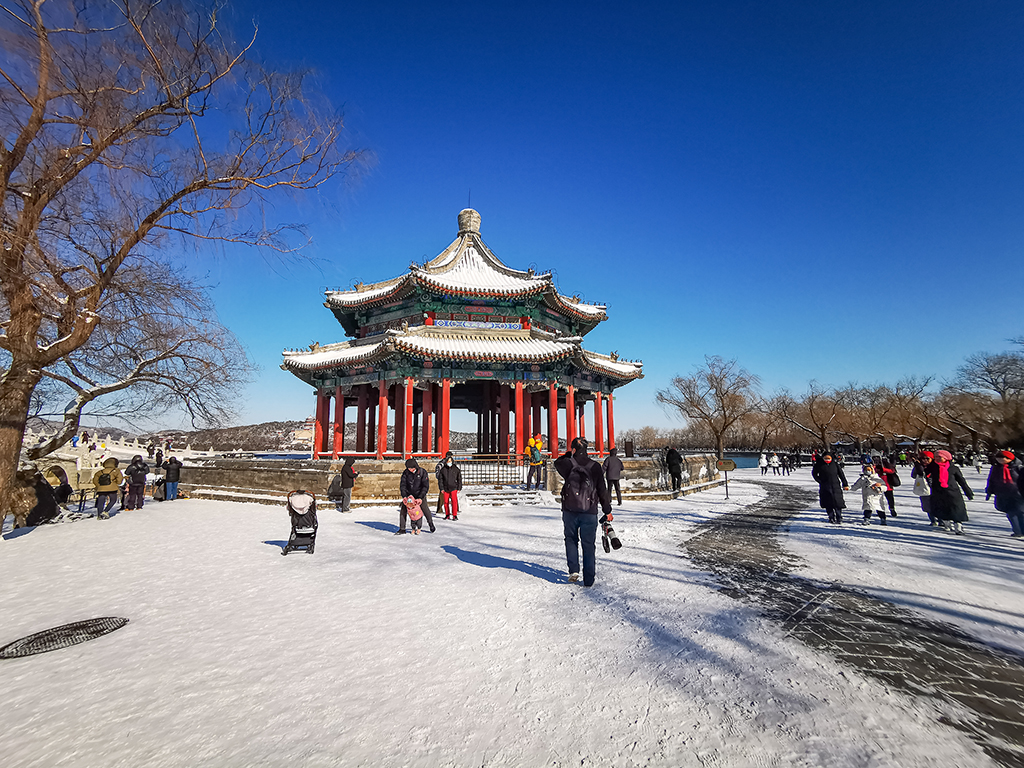 Kuoru Pavilion is covered by snow in the Summer Palace. [Photo/IC]