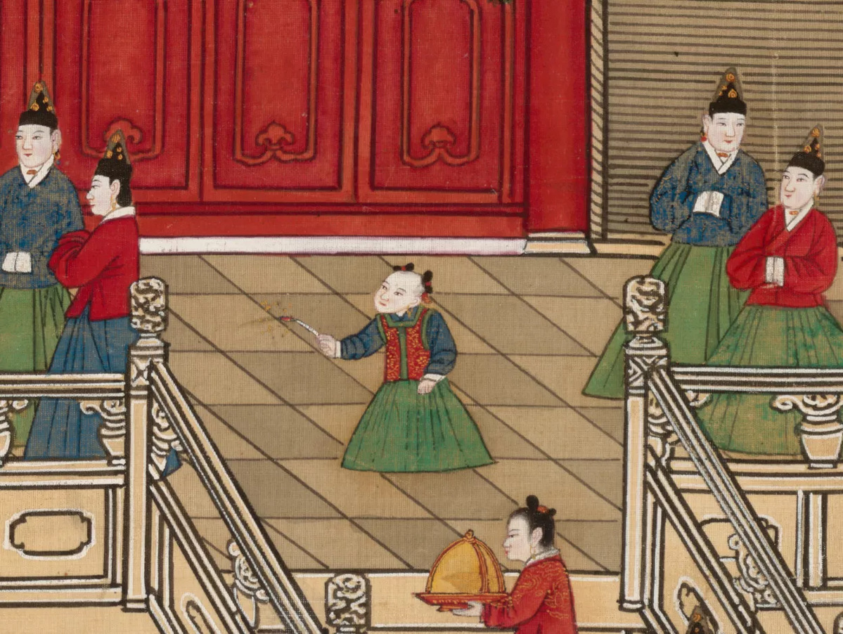 Detail of the painting that depicts a child setting off fireworks in the imperial palace [Photo/Official WeChat account of the National Museum of China]