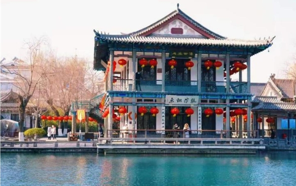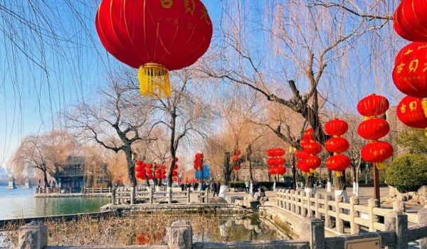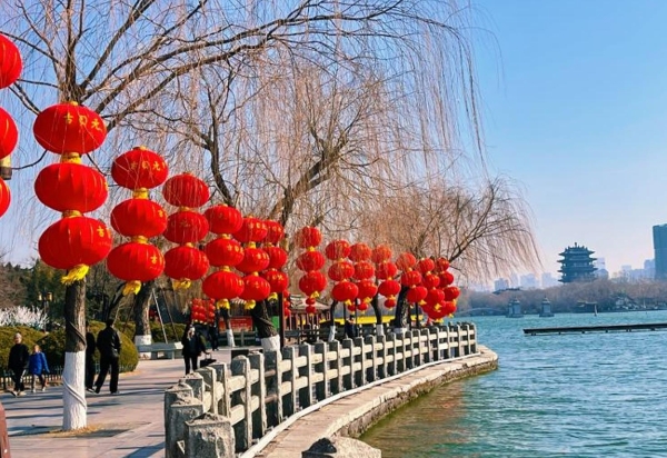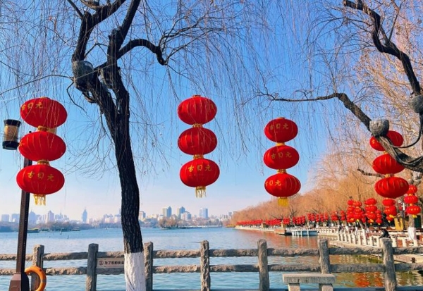 Red lanterns are hung up at Daming Lake. [Photo/dzwww.com]