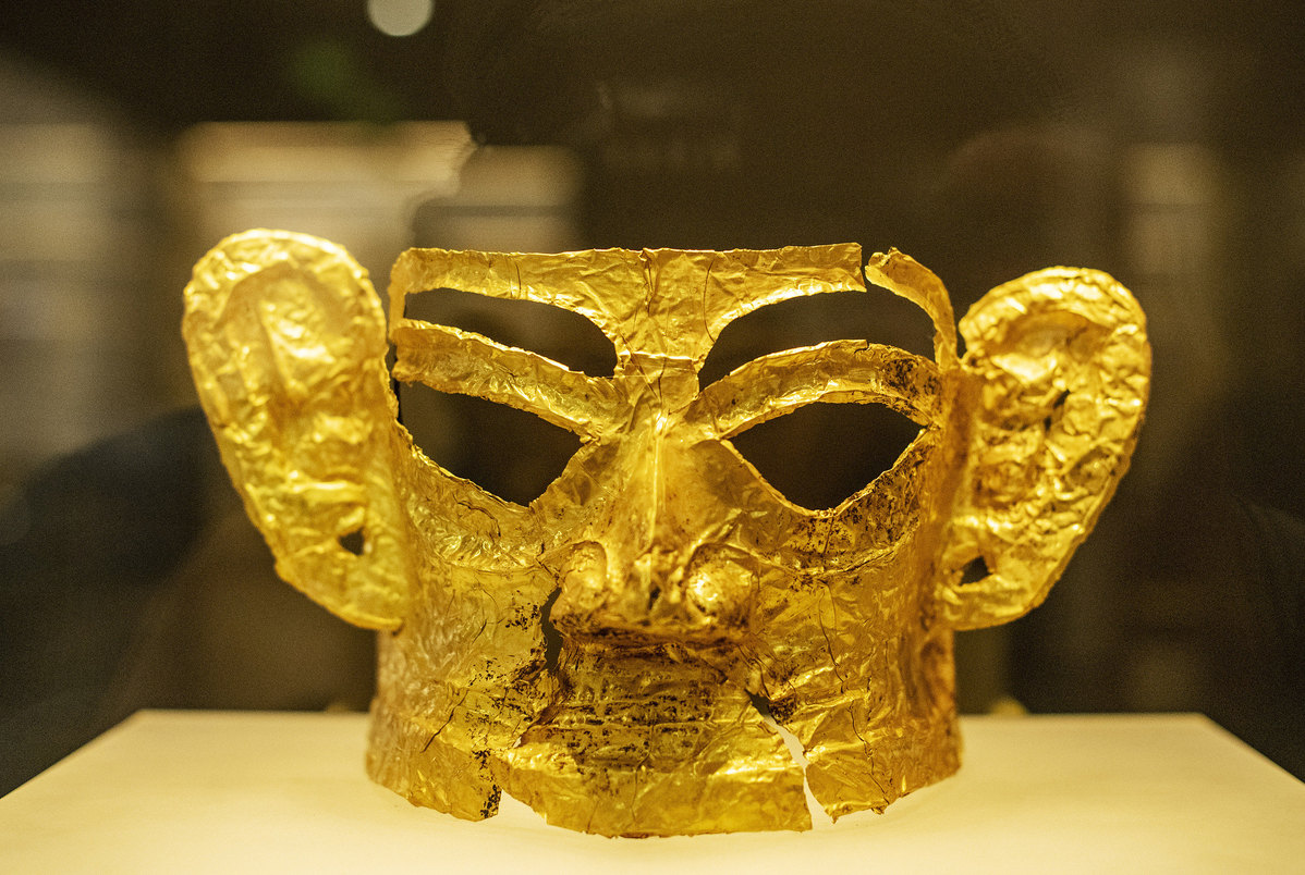 The gold mask is on exhibit at the Sanxingdui Museum in Sichuan province. [Photo/VCG]