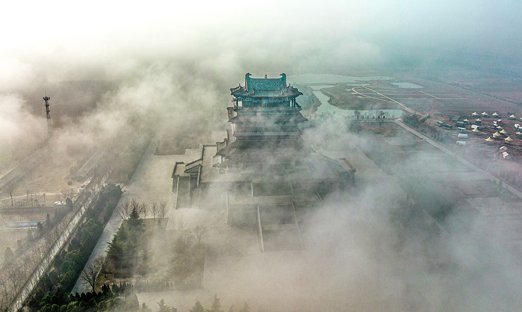 Sea of clouds over Stork Tower in Shanxi is one breathtaking scene