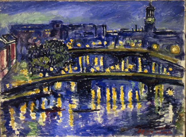 Night Scene along the Suzhou River, oil painting, Liu Haisu (1896-1994), 1964 [Photo/Official WeChat account of the Liu Haisu Art Museum]