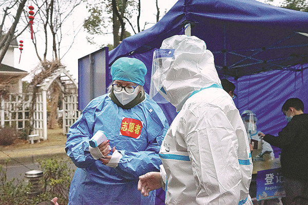 He has been volunteering at the Tianyu residential community testing site in the Suzhou Industrial Park since Valentine's Day. Together with a team of foreign volunteers, which he helped found last June, Yoo helps with translations, registration and maintaining order at the site.
