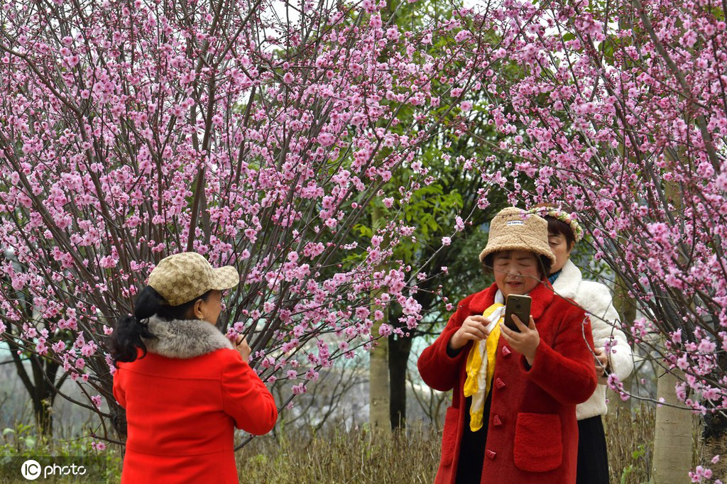 Camera-ready residents are attracted to the blooming pink peach blossoms in Huangjuewan Park in Southwest China’s Chongqing. [Photo/IC]