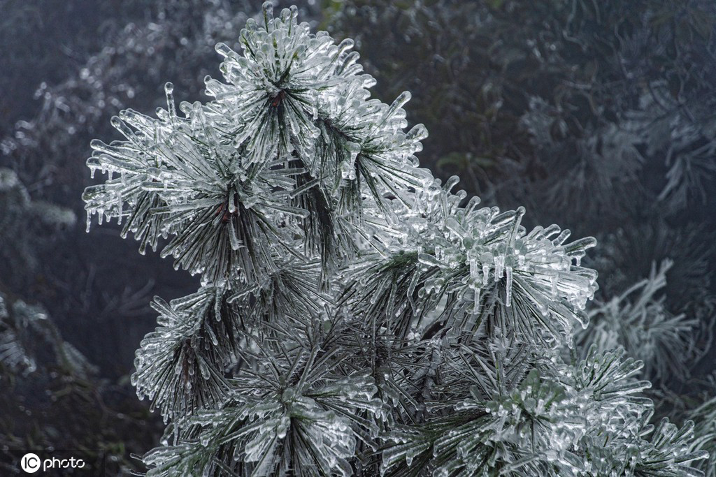 Soft rime and icicles appear on Jiangxi mountains