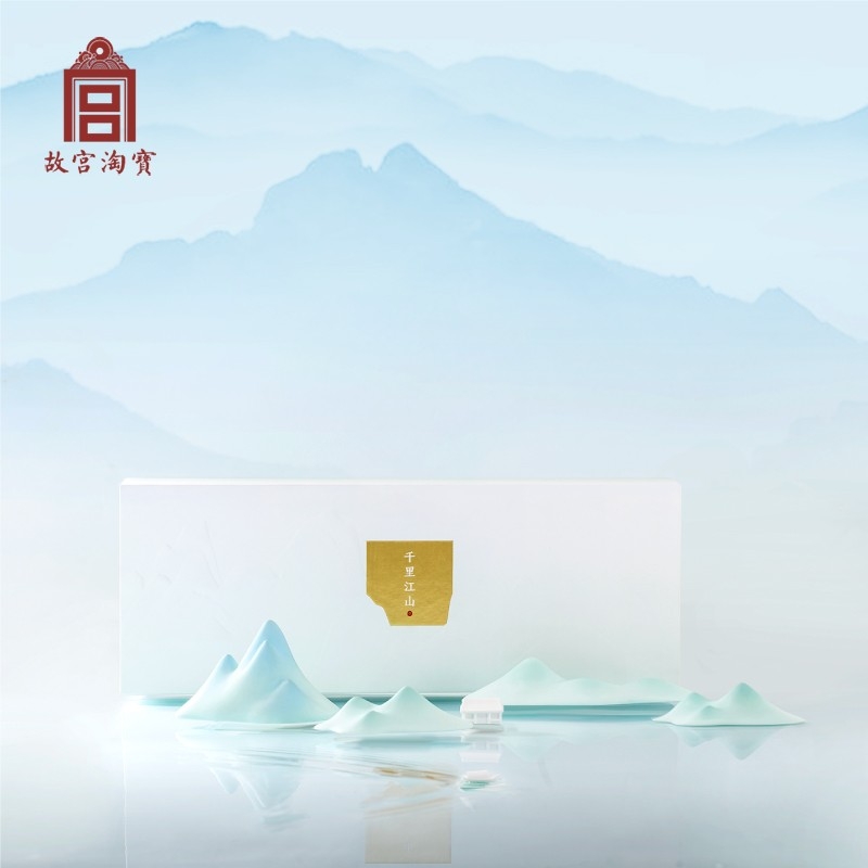 The painting has inspired the design of a creative cultural product. Six plaster models designed in the shapes of green and blue mountains, white houses and a boat are now a decorative knick-knack that can emit fragrance when sprayed. Let the product bring you an elegant lifestyle!