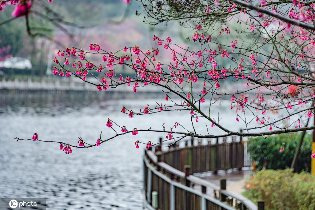 Blooming cherry blossoms present pink scenery in Jiangxi