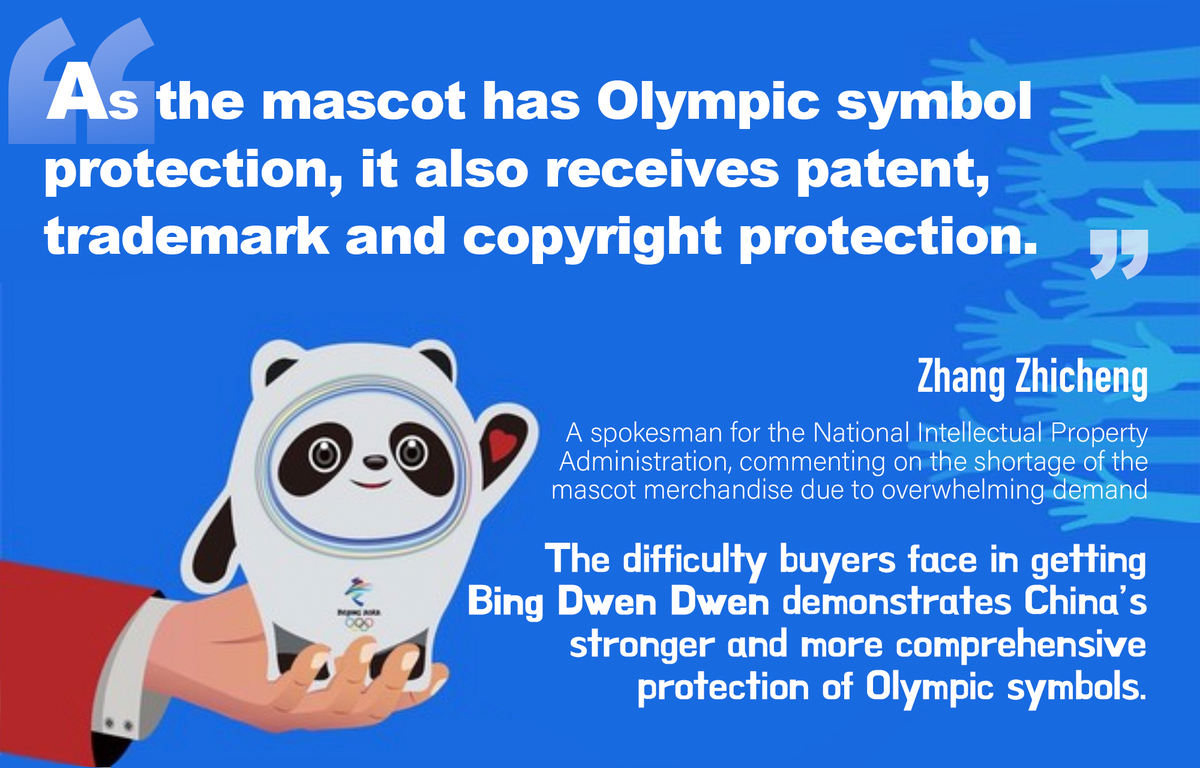 The overwhelming demand for Bing Dwen Dwen merchandise has demonstrated China's determination to protect Olympic symbols, officials and legal professional said.
