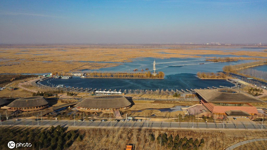 Aerial views of the vast area of golden reeds growing in the Baiyang Lake in North China’s Hebei province [Photos/IC]