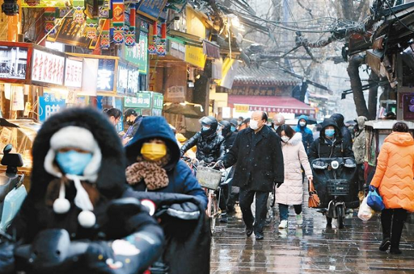 Shoppers throng to the Beiyuan Gate Historical and Cultural Block in Xi'an on Jan 23. [Photo by Shang Hongtao/Xi'an Daily]