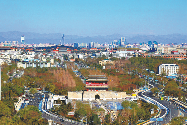 Beijing's central axis starts in the south of the city at the Yongding Gate and includes the Drum Tower and Bell Tower in the north. NIU YUNGANG/FOR CHINA DAILY