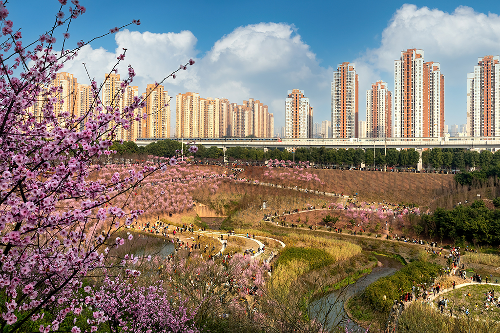 Bullet train parts the sea of Meiren flowers in Chongqing
