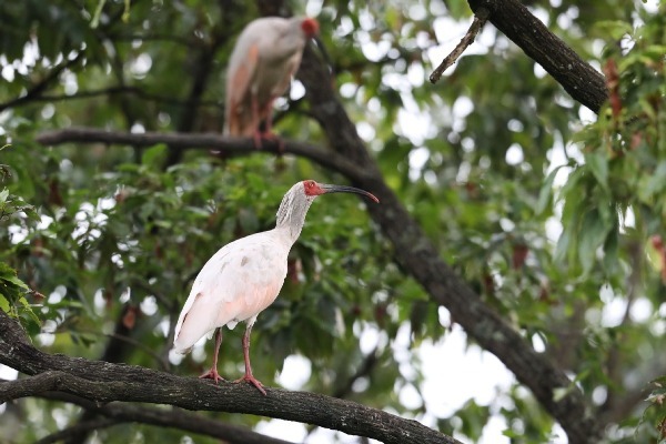 Crested ibises are seen perched on trees in the Beihu Marshland in Hangzhou, East China's Zhejiang province. [Photo provided to chinadaily.com.cn]