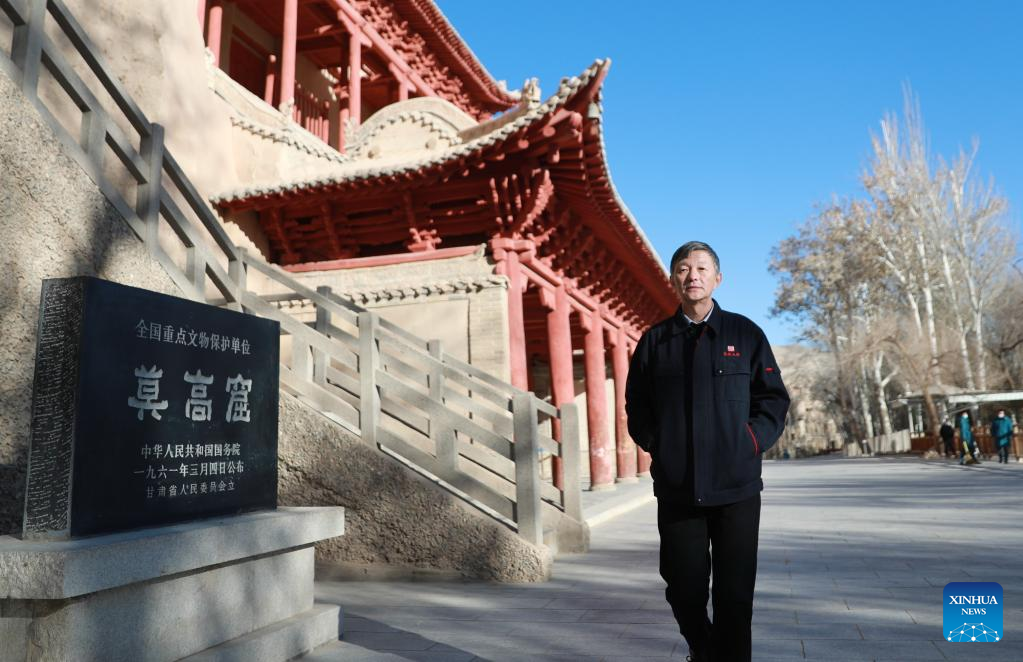 Photo taken on Feb 23, 2022 shows Su Bomin in the Mogao Grottoes in Dunhuang, Northwest China's Gansu province. [Photo/Xinhua]