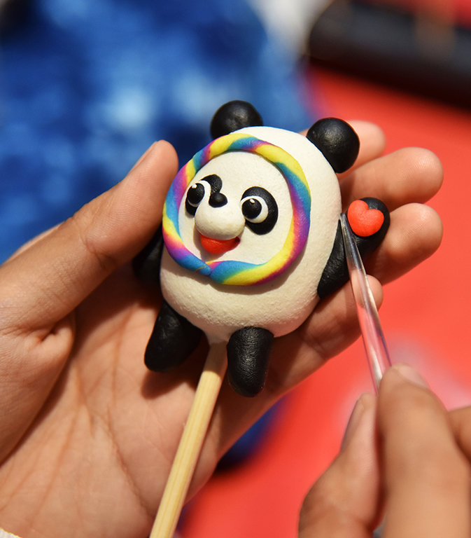 Young female inheritor makes dough dolls of Bing Dwen Dwen