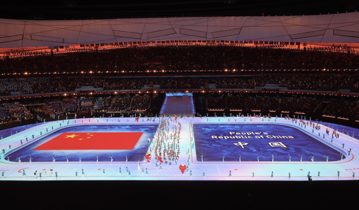 The delegation of the People's Republic of China parade into the National Stadium during the opening ceremony of the Beijing 2022 Paralympic Winter Games at the National Stadium in Beijing, March 4, 2022. [Photo by Feng Yongbin/chinadaily.com.cn]