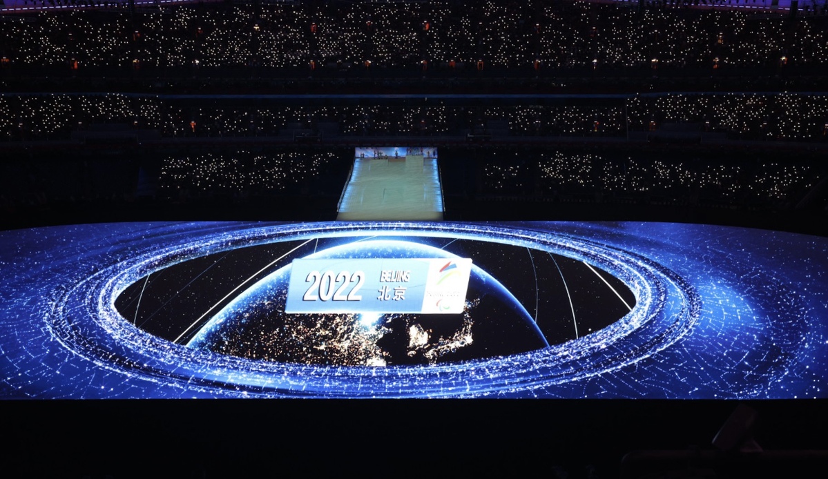 Photo taken on March 4, 2022 shows the countdown performance ahead of the opening ceremony of the Beijing 2022 Paralympic Winter Games at the National Stadium in Beijing. [Photo by Feng Yongbin/chinadaily.com.cn]